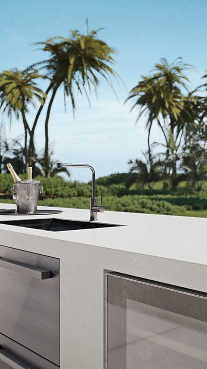 Utomhuskollektionen har utformats och testats av vårt forsknings- och utvecklingsteam och kombinerar Caesarstones beprövade egenskaper med den senaste tekniken för väder- och UV-beständighet.