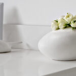 En stilren och vit basyta, med små grå korn som ger en känsla av värme och mångsidighet.