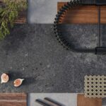 Dramatiska nyanser av robusta betongartade gråtoner, med vit patina och industriell-inspirerade ojämnheter som betonas ytterligare av en djupt texturerad yta.