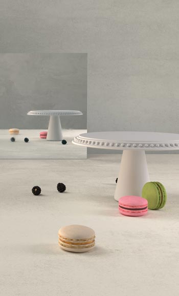 Betong möter porslin på en ljus, neutral basyta som påminner om nygjuten cement – ojämn och lätt oregelbunden – vilket kontrasteras mot små grå korn och ett lätt stenliknande utseende. Detta ger inte bara skivan en autentisk textur, utan förvandlar den till en molnliknande dimma vars taktila känsla är utmärkande för en Ultra Rough-ytbehandling.