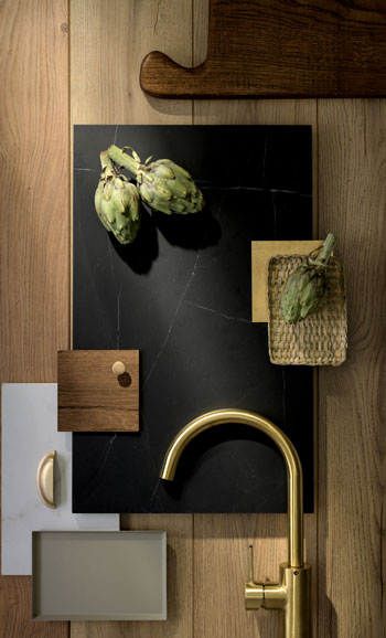En dramatisk svart bas som väcks till liv med skarpa, smala streck som slår ner som blixtar på en mörk midnattshimmel – allt i en slipad ytbehandling. En livlig, parallell rörelse får ännu mer kraft i kombination med inverterade skivor.