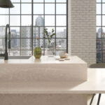Ett kraftfullt och betonat utrymme som kombinerar industriell, nordisk och modern design för att skapa ett okonventionellt rum som ytterligare accentueras av den oväntade, men djärva färgen på köksön.
