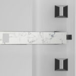 En lockande kombination som svämmar över av täta, mörka och milt grå diagonala ådror, vilka flyter över en skinande vit basyta.