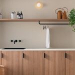En minimalistisk nordisk tvättstuga, en vinnande kombination av praktiska och estetiska egenskaper. Ytan är en väggbeklädnad och är därför både visuellt attraktiv och en praktisk lösning i sådana fuktiga utrymmen.