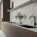 Nordiskt enväggskök med köksö i Caesarstone-färg 505 Archetta | 8460 | 8471